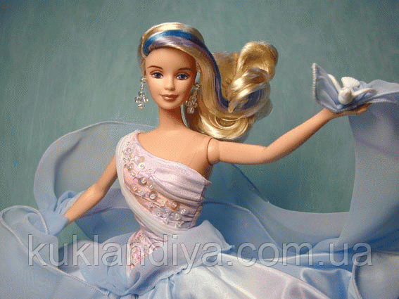 Друга в колекції Essence of Nature лялька Whispering Wind Barbie — це вихор краси. Її спідниця з тафти, виготовлена з фантастичної тканини, що схожа на поривчастий вітер, вирізняється плавними відтінками небесно-блакитного та лілового. Її плісирований ліф виготовлений у відповідних плавних тонах і прикрашений блискучими блискітками. До плаття прикріплений розшитий блискітками шифоновий пояс, який спадає набік, ніби його розгойдує легкий вітерець. Довге платинове світле волосся ляльки Whispering Wind Barbie, зі смаком пофарбовані тонкими пасмами бузкового та синього кольорів, витончено падають в один бік, а в руці вона тримає білого голуба.